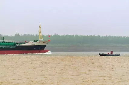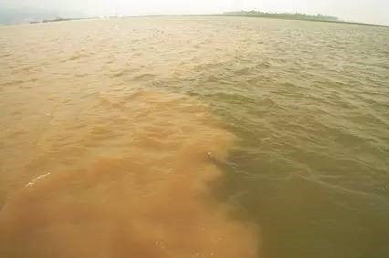 鄱陽(yáng)湖與長(zhǎng)江的交匯處(古稱彭蠡口),一艘在長(zhǎng)江中行駛的輪船和一艘泊在分界線上的小船。江水清,湖水濁,涇渭分明。一反史上“江水西來(lái)而濁,湖水南來(lái)清?!被颉昂S而江水赤”的常態(tài)?!吧嫌蝸?lái)水經(jīng)三峽水庫(kù)攔截之后,大多數(shù)泥沙沉淀在水庫(kù)中,再加上水流較慢,長(zhǎng)江水到這里就變清了。而在長(zhǎng)江禁止采砂之后,鄱陽(yáng)湖這邊大量采砂,砂船不斷出入,導(dǎo)致湖水含沙量急劇上升?!苯魇∩鷳B(tài)學(xué)會(huì)秘書長(zhǎng)戴年華解釋說(shuō)。“現(xiàn)在,只有在長(zhǎng)江三峽開閘大量泄洪的時(shí)候,江水才有可能比這里渾?!贝L(zhǎng)張忠祿說(shuō)。