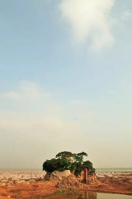 開(kāi)往湖口(鄱陽(yáng)湖入長(zhǎng)江之口)的一艘運(yùn)砂船。由于水位低,遠(yuǎn)處的部分湖底已經(jīng)露出,成為碧綠的草洲。