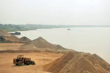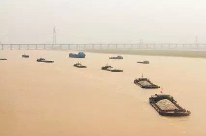 駛向長(zhǎng)江方向的運(yùn)砂船隊(duì)。1998年長(zhǎng)江干流開(kāi)始禁止采砂后,采砂業(yè)開(kāi)始在鄱陽(yáng)湖迅速發(fā)展。