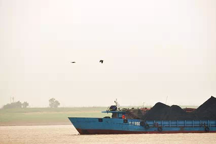 一艘來(lái)自長(zhǎng)江(通常是四川或重慶)的運(yùn)煤船。當(dāng)前,江西各地正面臨電煤供應(yīng)日趨緊張的情況,超過(guò)七成需要從外省或國(guó)外購(gòu)買。